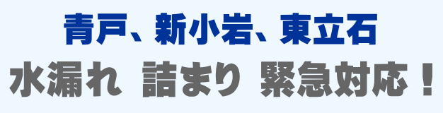 青戸、新小岩、東立石での水の困った即解決!急な水道トラブルに緊急でかけつけ訪問し、蛇口の水漏れ、トイレ詰まり、排水の溢れ、タンクの故障など修理いたします。